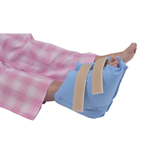 Fibre filled heels protectors. Hollow fibre inner to reduce the pressure on the heel area, along with high sided bootee wall to protect the ankles for coming in contact with each other. The bootees are manufactured in such a way to help patients with drop foot and malposition. The outer material is an inherently fire retardant with soft foam covered strapping to keep in place. One size fits all.