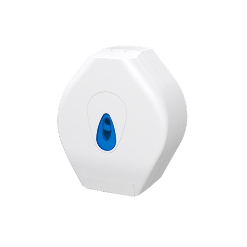 Maxi jumbo roll dispenser with handy viewing window for checking refill level. With easy wipe clean surface.