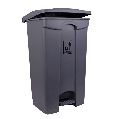 A sturdy foot operated bin made fro easy-clean hygienic polypropylene suitable for any environment. 87 Litre bin available in grey or yellow. Dimensions 85x50x41cm