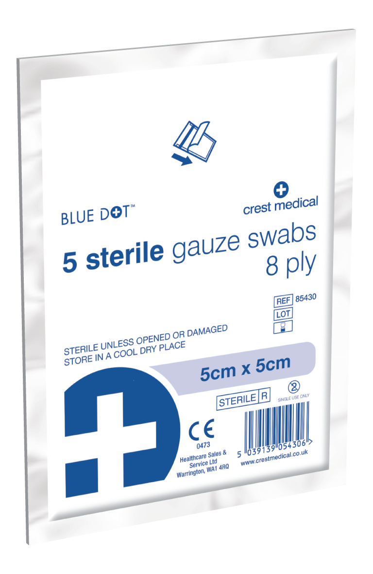 Pack of 5 Sterile Swabs 8 ply 5cmx5cm